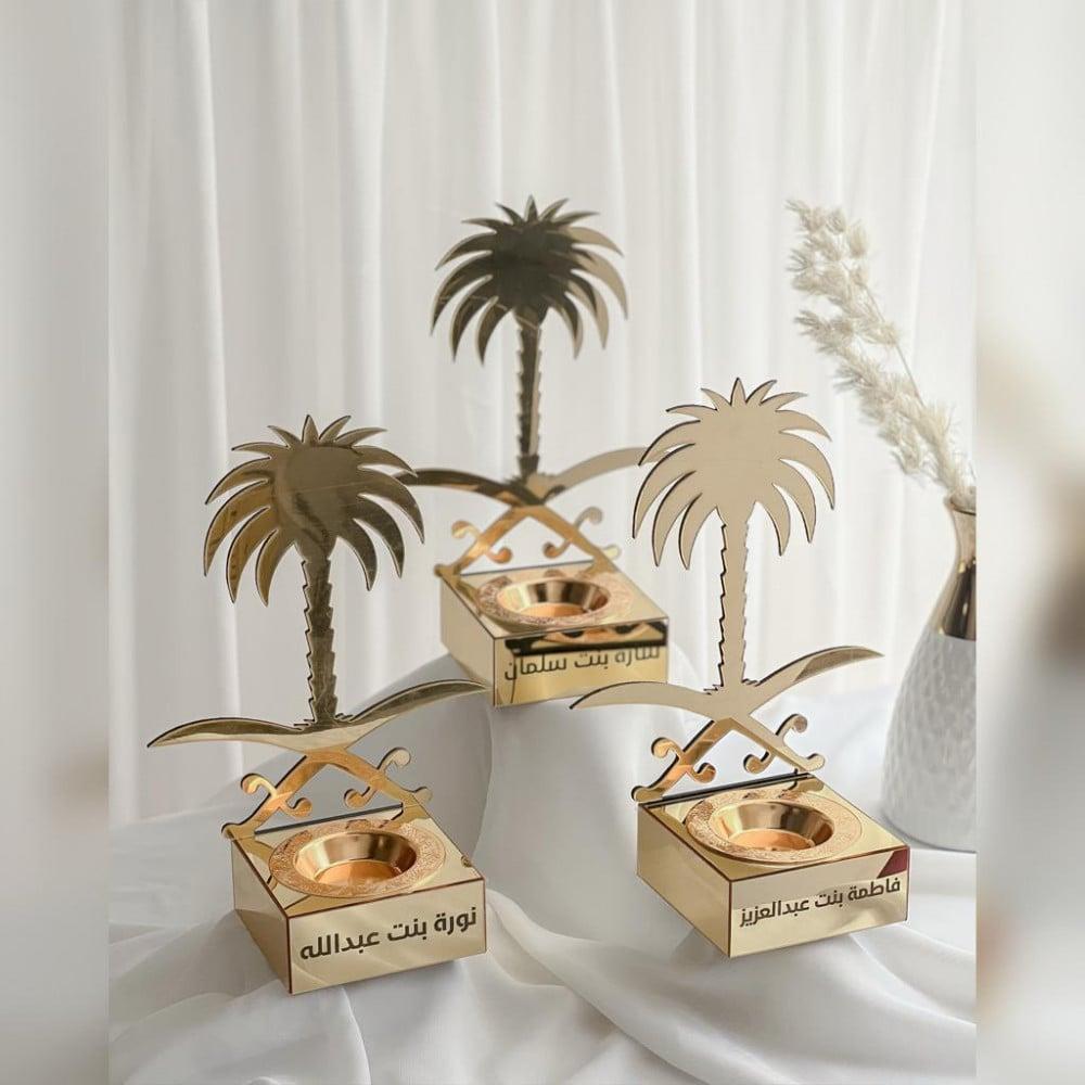مصنوع بلون ذهبي فاخر و لمسة خاصة بك كتابة اسمك على المبخرة لإضافة طابع انيق يليق بك او بأحبابك