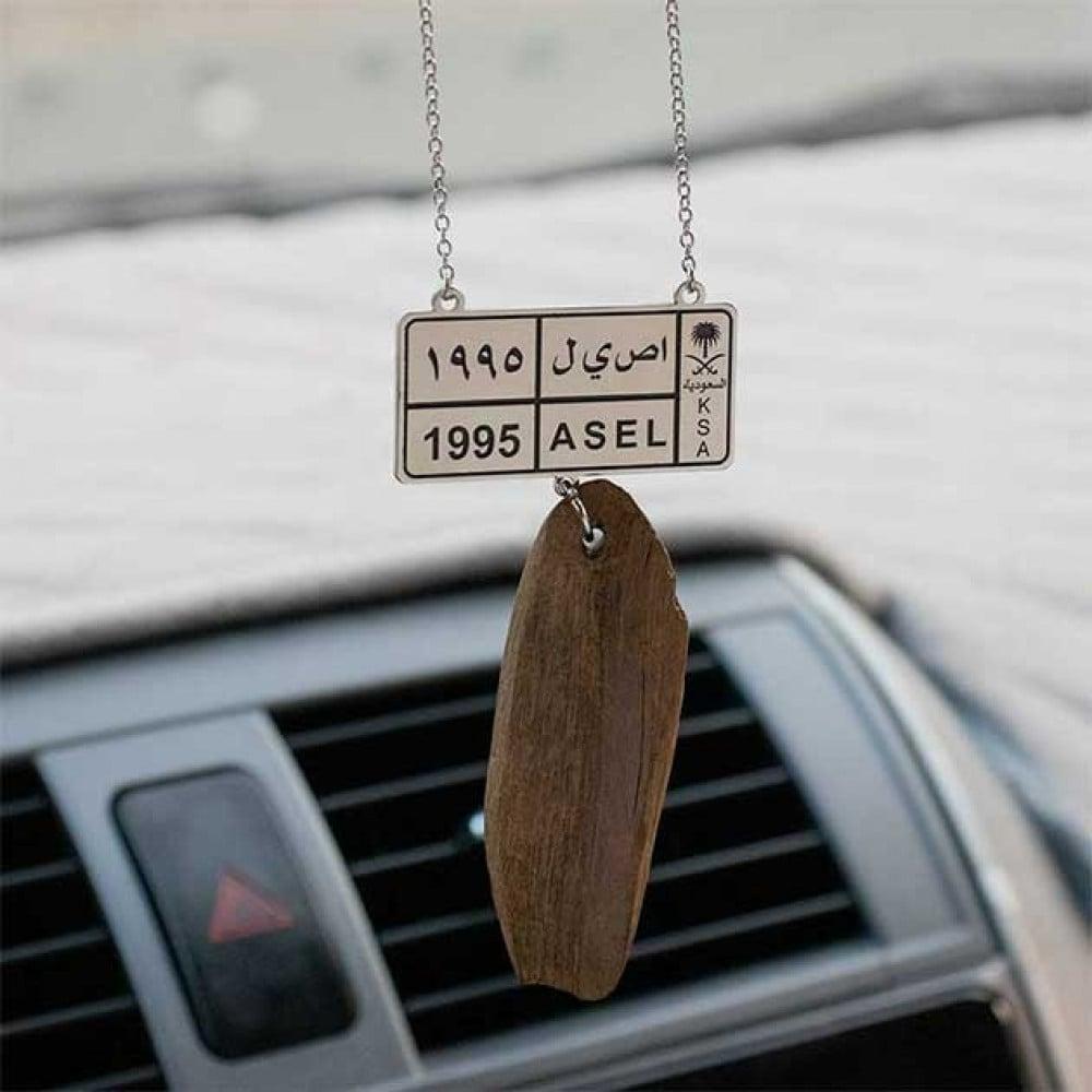 اجعل سيارتك تعكس شخصيتك الفريدة مع تعليقة السيارة المخصصة بلوحة الاسم، المصنوعة بدقة في متجر ملكة. تأتي مطلية بـ الذهب أو الفضة لإضفاء لمسة من الفخامة، مع إضافة كسرة العود الفاخرة لرائحة مميزة تدوم.