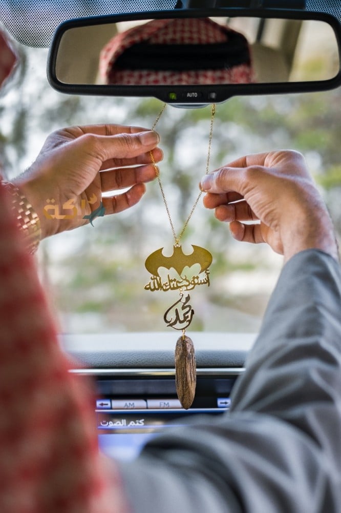 تعليقة سيارة على شكل شعار باتمان بالاسم