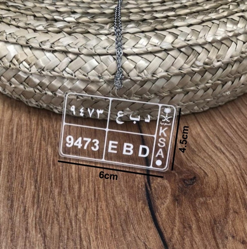 تعلية سيارة تحاكي شكل لوحة السيارات بالحروف العربيه والانجليزية