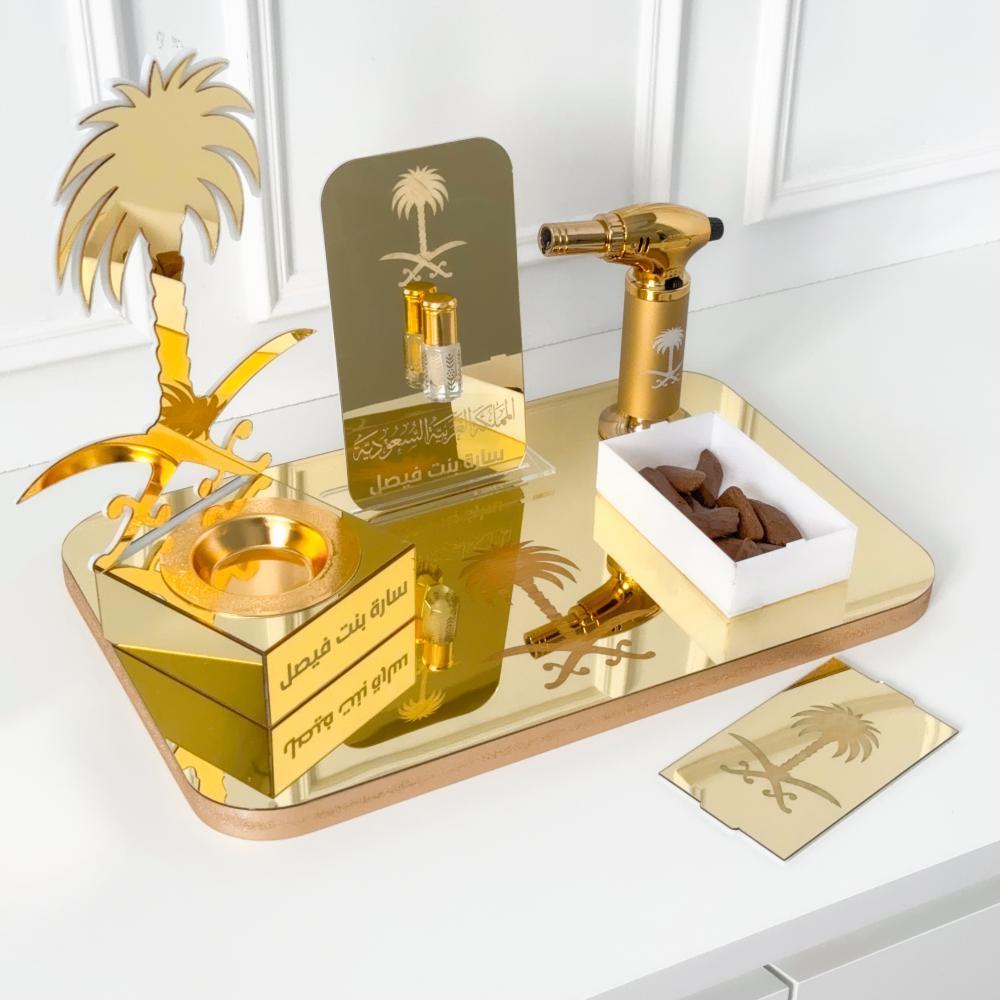 تفاصيل المنتج*مجموعة اليوم الوطنييتكون العرض من :ولاعة فاخرةعلبة بخورصينية بشعار سيفين ونخلةمبخرة سيفين ونخلةمسك وحامل مسكالمقاسات :الطول : 38 سمالعرض 24 سمالأرتفاع :28 سم