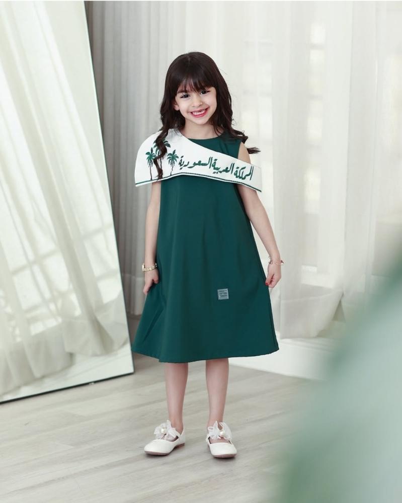 فستان اليوم الوطني السعودي بتصميم جديد وحصريتم تصميمه بكل حب لاناقة اطفالكمالعباره نسويها حسب الطلبمتوفر جميع المقاسات من 6-9 شهور إلى 15 سنةتوصيل لجميع مناطق المملكة