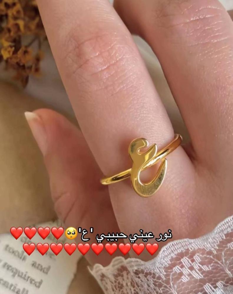 خاتم الاناقة والجمال بين يديكخاتم ناعم بالحرف الجميل0.1 مطلي بالذهب عيار 212. مصنوع من الفضة المطلية3. تصميم بالحرف العربي أو الإنجليزي حسب طلبك4. ضمان ثبات اللون5. المقاسات فري سايز سهل التحكم فيه