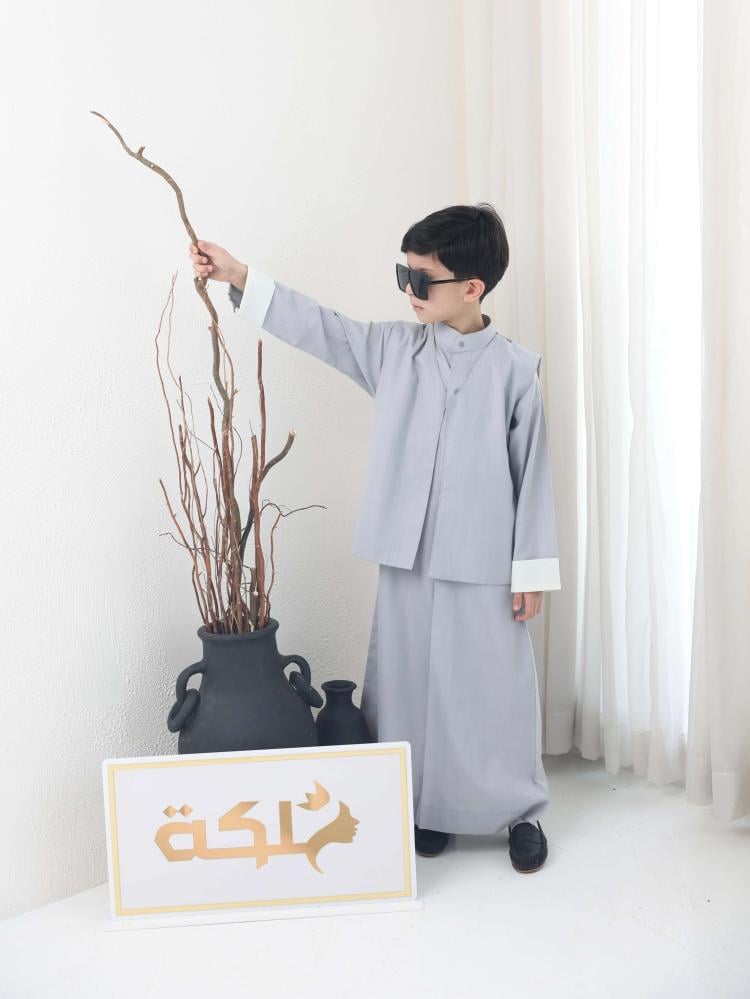 لأن العيد فرحة وأطفالكم يستحقون التألق، نقدم لكم طقم الثوب والسديري بتصميم فاخر ولمسة شخصية مميزة مع تطريز الاسم. مصنوع بحرفية عالية ليمنح طفلك إطلالة أنيقة تناسب هذه المناسبة السعيدة. متوفر بمقاسات للأطفال من 6 أشهر إلى 12 سنة.