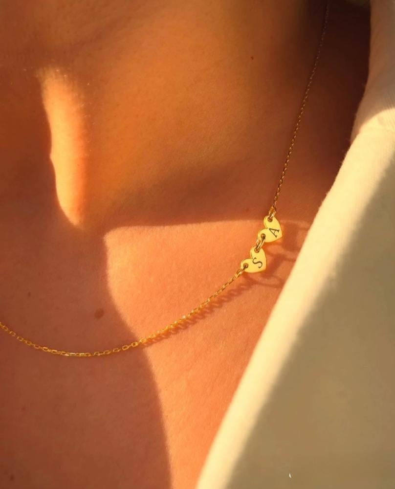 قلادة قلبين حروف حسب الطلبتفاصيل المنتج:يمكنك كتابه الحروف عربي او انجليزي.يتوفر اللون الذهبي والفضي.مطلي مقاوم للصدأ.ضمان على المنتج من ملكةنصنعه باحتراف يدوياً وبشكل خاص لكل عميل.تصل الهديه في علبه راقية مع كيس عليه شعار ملكة